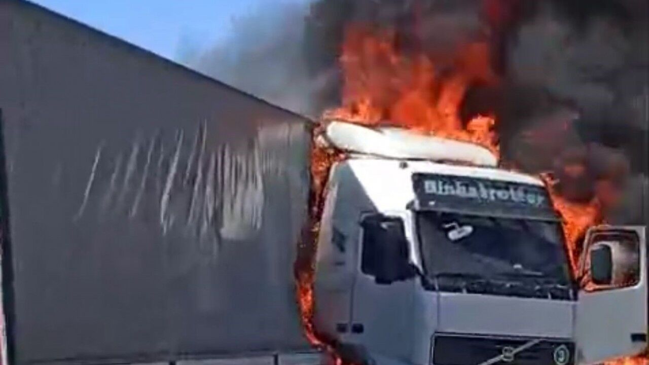 Gaziantep’te seyir halindeki tır alev aldı, maddi hasar meydana geldi.