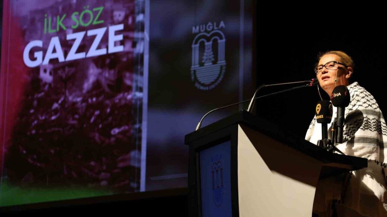 Muğla Sıtkı Koçman Üniversitesi 2025-2026 Eğitim ve Öğretim Yılı akademik Açılış törenine katılan ‘Anadolu’dan Gazze’ye’ Platformu Başkan Yardımcısı aktivist Ayçin Kantoğlu ‘İlk Söz Gazze’ konulu konuşma gerçekleştirdi. Muğla Sıtkı Koçman Üniversitesi AKM 15 Temmuz Demokrasi Şehitleri Salonunda konuşan aktivist Ayçin Kantoğlu, "Kendisinin üstün olduğunu iddia eden, başkalarını katledebileceğini, katledebiliyor olduğunu iddia eden, hatta çocukların bile katledebilir olduğunu iddia ediyor. Sayın Cumhurbaşkanı’nın bir tespiti var, İslam dünyası sınıfta kaldı, Batı Devletleri sınıfta kaldı ve sonunda halklardan bir irade ortaya çıktı. Bu organizasyona Mavi Marmara ile başlayan Madleen ve Hanzala ile devam eden ve tam olarak da adını Sumud koydukları bir eylem ortaya çıktı" dedi.