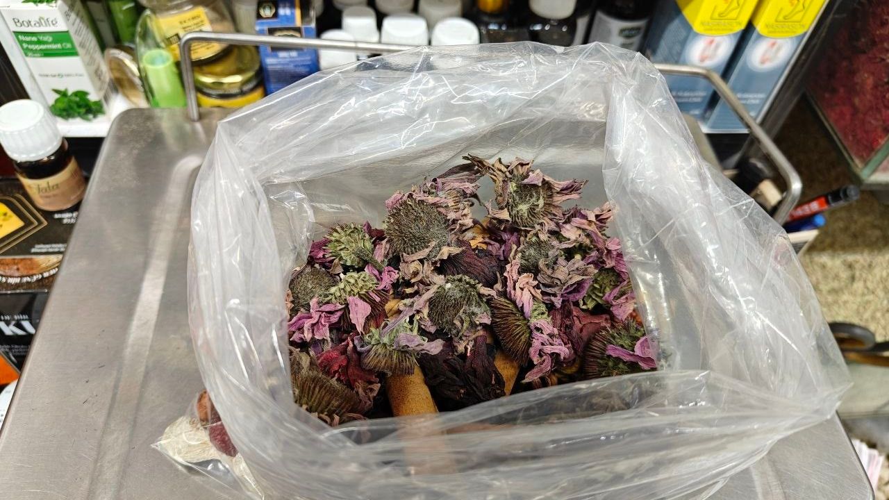 Bitkisel ürünlerin hem geçmeyen öksürüğe hem de grip gibi hastalıklara iyi geldiğini söyleyen Aktar Rahmetullah Sadıkoğlu; "Vatandaşlarımızdan gelen şikayetlerimizin çoğu geçmeyen kuru öksürük, nezle ve grip gibi şikayetler oluyor. Bu sene de bu hastalıklar çok ağır atlatılıyor. Bunun için de hibiskus, yaş zencefil ve ekinezya kullanırlarsa çok iyi olur. Bunlar C vitamini takviyesi olarak geçer. C vitaminini çoğu zaman portakaldan alabilirsiniz ama hibiskustan, ekinezyadan alınan C vitamini daha yüksek olur. Tamamen bitkisel ve çay şeklinde demlenip tüketilirse çok iyi gelir ve hiçbir şey kalmaz. Ayrıca özel kendi yaptığımız macunlar var. Andız pekmezli, zencefilli, ballı macunlar bunlar. Bunlar geçmeyen kuru öksürüğü anında alır. Bunların da balgam sökücülüğü ve akciğerdeki iltihaplanmalara bire birdir" dedi.
