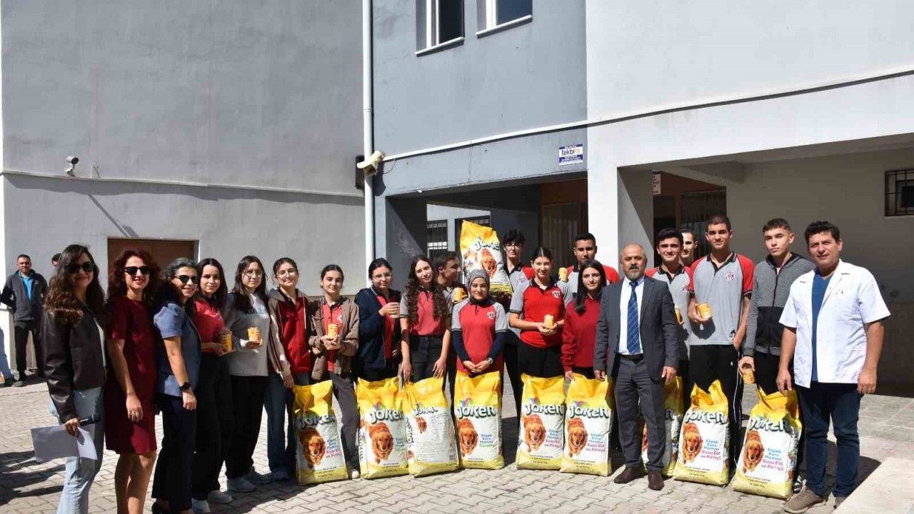 Aydın’ın Germencik ilçesinde lise öğrencileri, belediyenin Sokak Hayvanları Merkezi’ne mama bağışında bulundu.