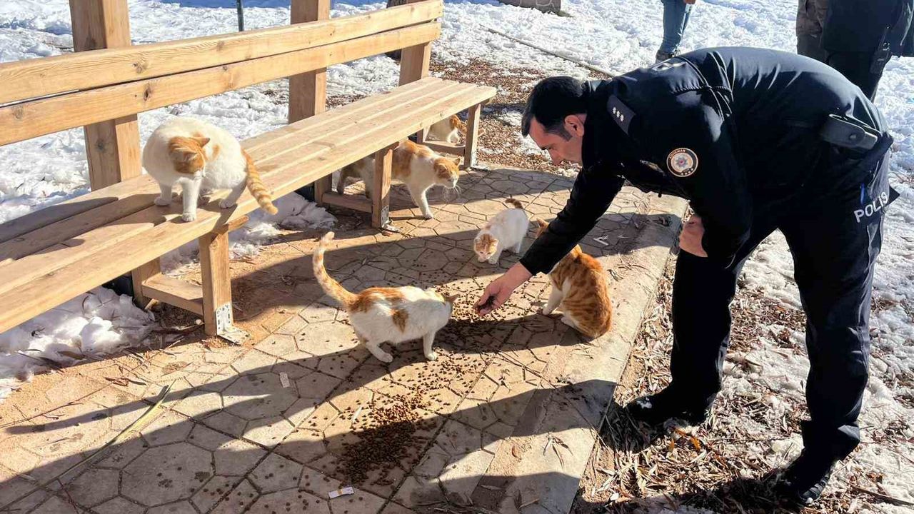 Adıyaman'ın Gölbaşı ilçe Emniyet Müdürlüğü ekipleri, sokak hayvanları için mama ve yem bıraktı.