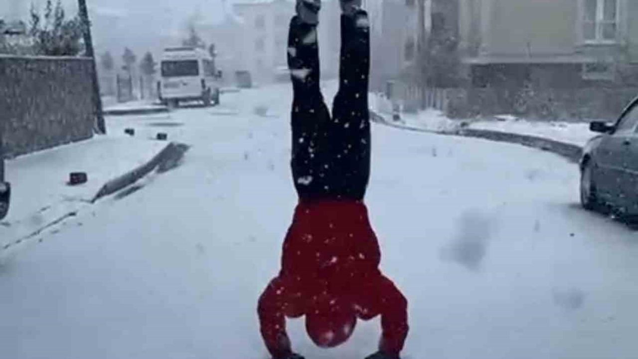 Kar yağışını çok sevdiğini belirten Osman Ismak, 'Terme'de kar yağışını görünce sevincimi bu şekilde göstermek istedim. Spor benim yaşam biçimim' dedi.