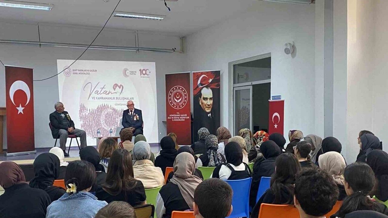 Gümüşhane’de "Vatan ve Kahramanlık Buluşmaları" programı kapsamında öğrencilerle bir araya gelen gaziler, kahramanlık hikâyeleriyle duygusal anlar yaşattı.