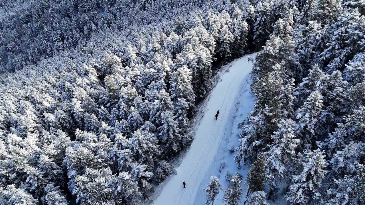 Karla kaplı çam ve göknar ormanları arasında unutulmaz bir gün geçiren sporcular yürüyüş boyunca yer yer 40 santimetreye ulaşan taze kar kütlesinin üzerinde yürüdü.
