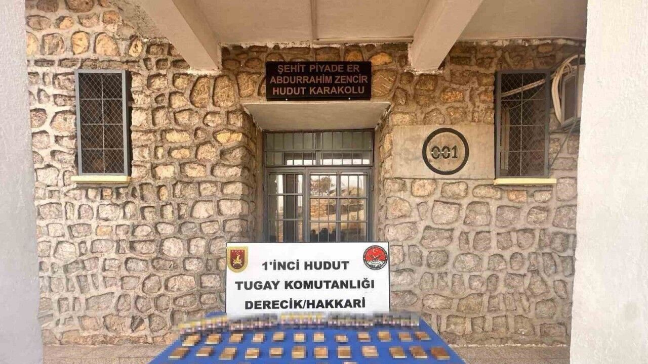 Hakkari’de güvenlik güçleri tarafından hudut hattında icra edilen faaliyetlerde 36 kilo 18 gram sarma altın ele geçirildi. Milli Savunma Bakanlığının sosyal medya hesabından yapılan paylaşımda, "Hudut birliklerimiz, keşif, gözetleme ve devriye faaliyetlerini 7 gün 24 saat aralıksız sürdürüyor. Son olarak Hakkâri hudut hattında yapılan arama tarama faaliyetinde 36 kilo 18 gram sarma altın ile 51 paket sigara ele geçirildi. Ele geçirilen malzemeler Derecik İlçe Jandarma Komutanlığına teslim edildi" denildi.