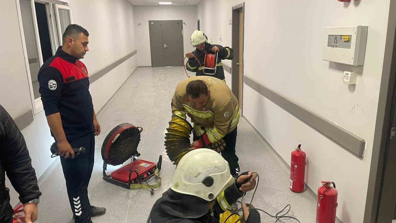 Hatay'da Defne Devlet Hastanesi'nde panodan çıkan yangın büyümeden söndürülürken, dumanların kapladığı serviste bulunan hastalar tahliye edildi.