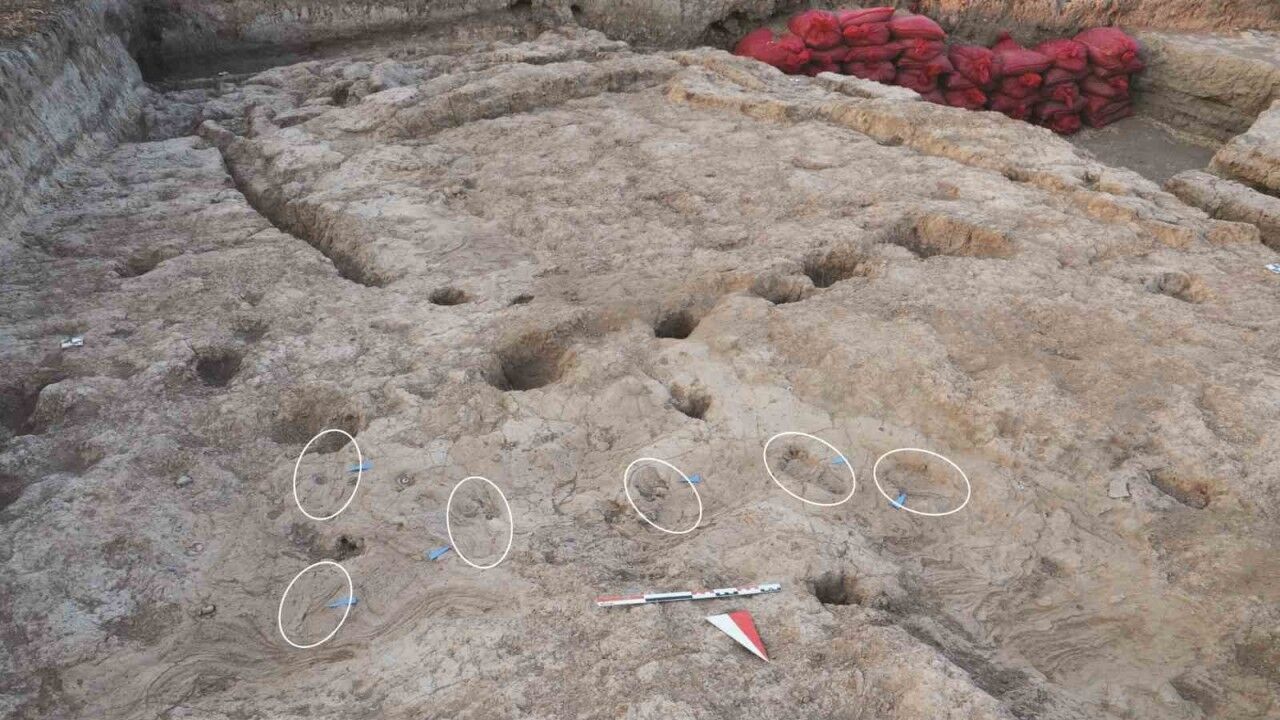 Hatay’ın Reyhanlı ilçesi Karahüyük Mahallesi’ndeki Tell Kurdu Höyüğünde yürütülen kazılarda, günümüzden 7 bin 200 yıl öncesine ait 5 insan ayak izi gün yüzüne çıkarıldı. Kazı Başkanı Arkeolog Doçent Dr. Rana Özbal, ölçülebilir nitelikte olan ayak izlerinden birinin 38 numara olduğunu ve diğerinin daha büyük olduğunu söyledi.