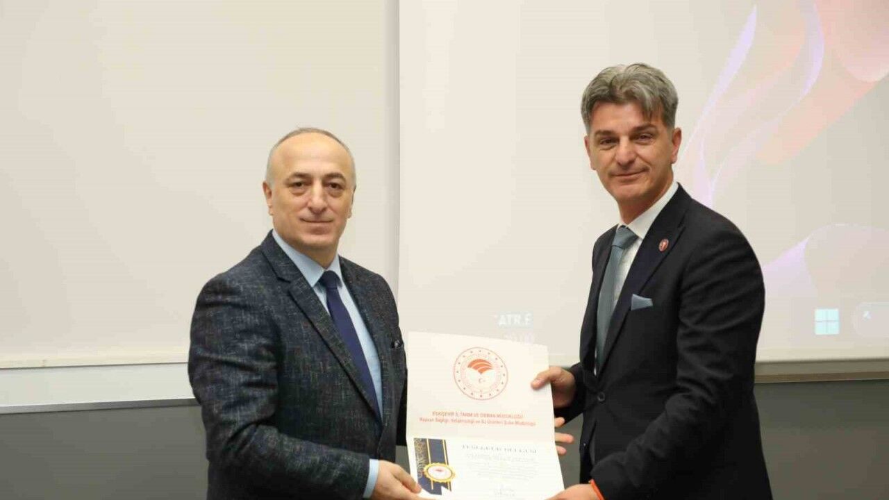 Hayvan Sağlığı, Yetiştiriciliği ve Su Ürünleri Şube Müdürlüğü tarafından düzenlenen toplantı Eskişehir Osmangazi Üniversitesi (ESOGÜ) Uygulama Oteli’nde gerçekleştirildi. Toplantının açılış konuşmasını yapan İl Tarım ve Orman Müdürü Yüksel Çil, "Bugün burada, 2025 yılı Hayvan Hastalıkları ile Mücadele ve Hayvan Hareketleri Kontrolü Genelgesi kapsamında yapılacak çalışmaların değerlendirilmesi ve sahada görev yapan tüm personelimizin güncel mevzuat ve uygulamalara ilişkin bilgi düzeylerinin artırılması amacıyla bir aradayız. Hayvan sağlığı, yetiştiriciliği ve su ürünleri alanında yürütülen faaliyetler; sadece ilimiz için değil, ülkemizin hayvansal üretim kalitesinin ve gıda güvenliğinin teminatı açısından da büyük önem taşımaktadır. Bu kapsamda, İl ve İlçe Müdürlüklerimizde görev yapan tüm Veteriner Hekimlerimiz, teknikerlerimiz ve teknisyenlerimiz; hastalıkların önlenmesi, eradikasyonu ve hayvan hareketlerinin kontrolünde en ön safta yer almaktadır" dedi.