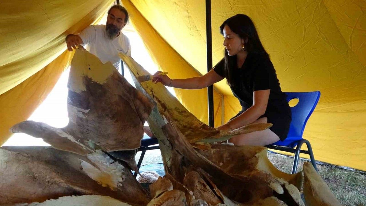 Hem kazı sürecine hem de iskeletin yapıştırma aşamasına gönüllü olarak katılan Fen-Edebiyat Fakültesi Biyoloji Bölümü öğrencisi Ayşe Alkaş, "Yaklaşık bir hafta süren kazı çalışmasında tüm kemiklerini, omurlarını ve kafatasını çıkardık. Şu anda birleştirme aşamasındayız, kemikleri sıralıyor, omurları birleştiriyoruz. Bazı kemiklerde kırıklar, bazı yerlerde deformasyonlar mevcut. Öğrencilerin bu sürece aktif olarak katılması da çok güzel. Benim için de ilk kez böyle bir deneyim oldu. Bu çalışma, kemik yapısını görmeyi, nasıl birleştirileceğini ve konstrüksiyon aşamasında ne yapılacağını anlamamızı sağlıyor. Sürecin tamamı bize çok şey öğretiyor. Daha önce hiç bu şekilde kemiklerle çalışmamıştım, o yüzden beni de mutlu etti" diyerek düşüncelerini anlattı.
