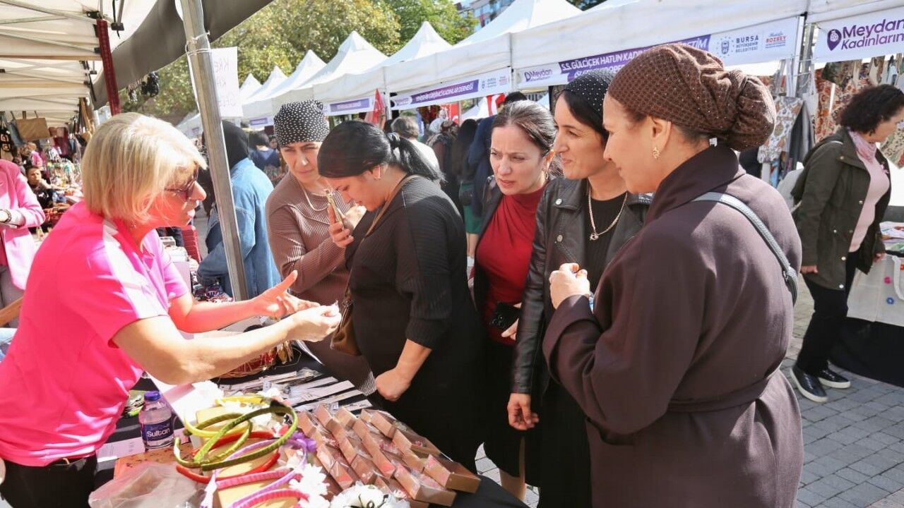 Büyükşehir Belediyesi’nin ‘Meydan Kadınların’ sloganıyla hayata geçirdiği dayanışma pazarı, bu kez Heykel Orhangazi Parkı’nda kuruldu. Kadınların el emeği ürünleri ve yöresel lezzetleri Bursalılarla buluşturduğu etkinlik, hem göze hem damağa hitap etti.