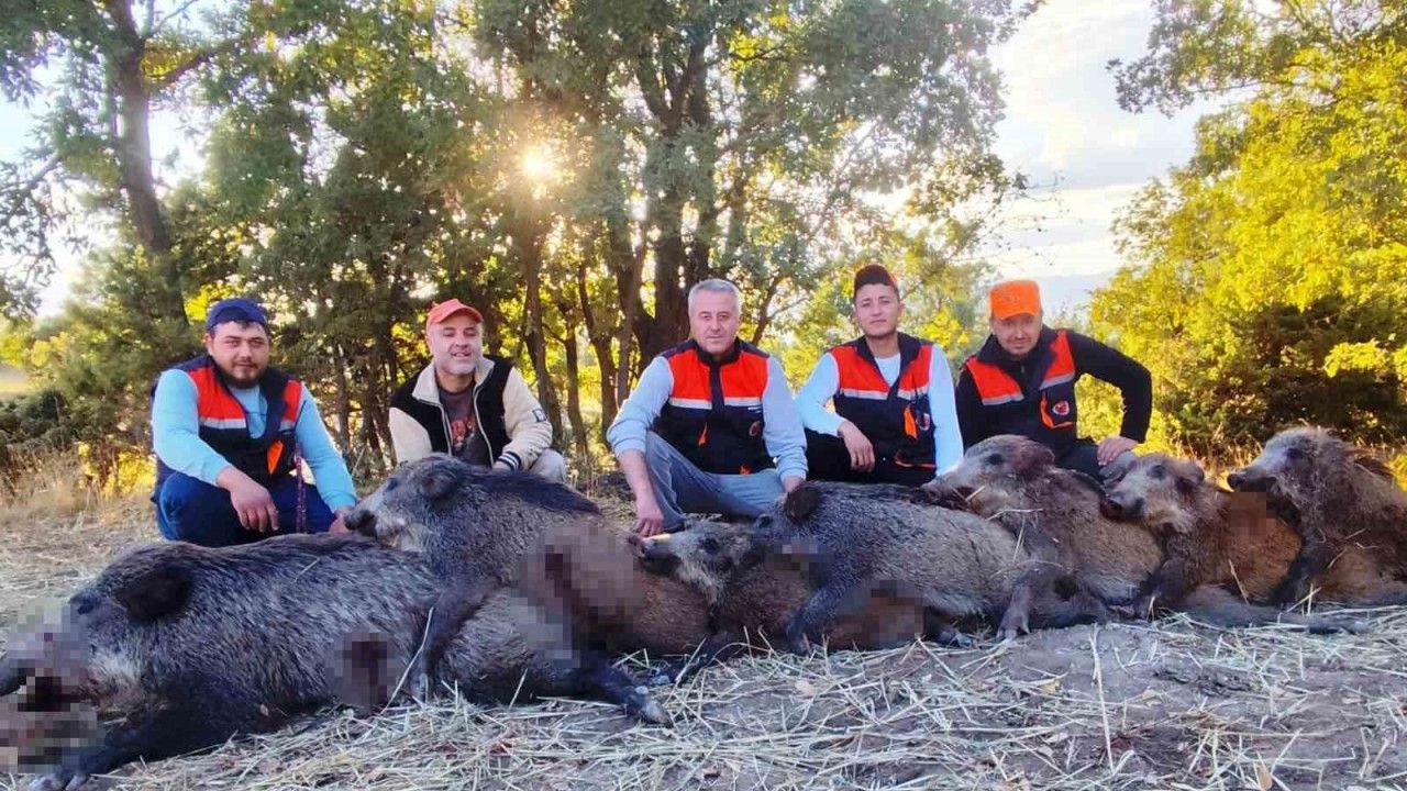 Kütahya’nın Hisarcık ilçesindeki avcılar 6 saatte 7 yaban domuz vurdu.