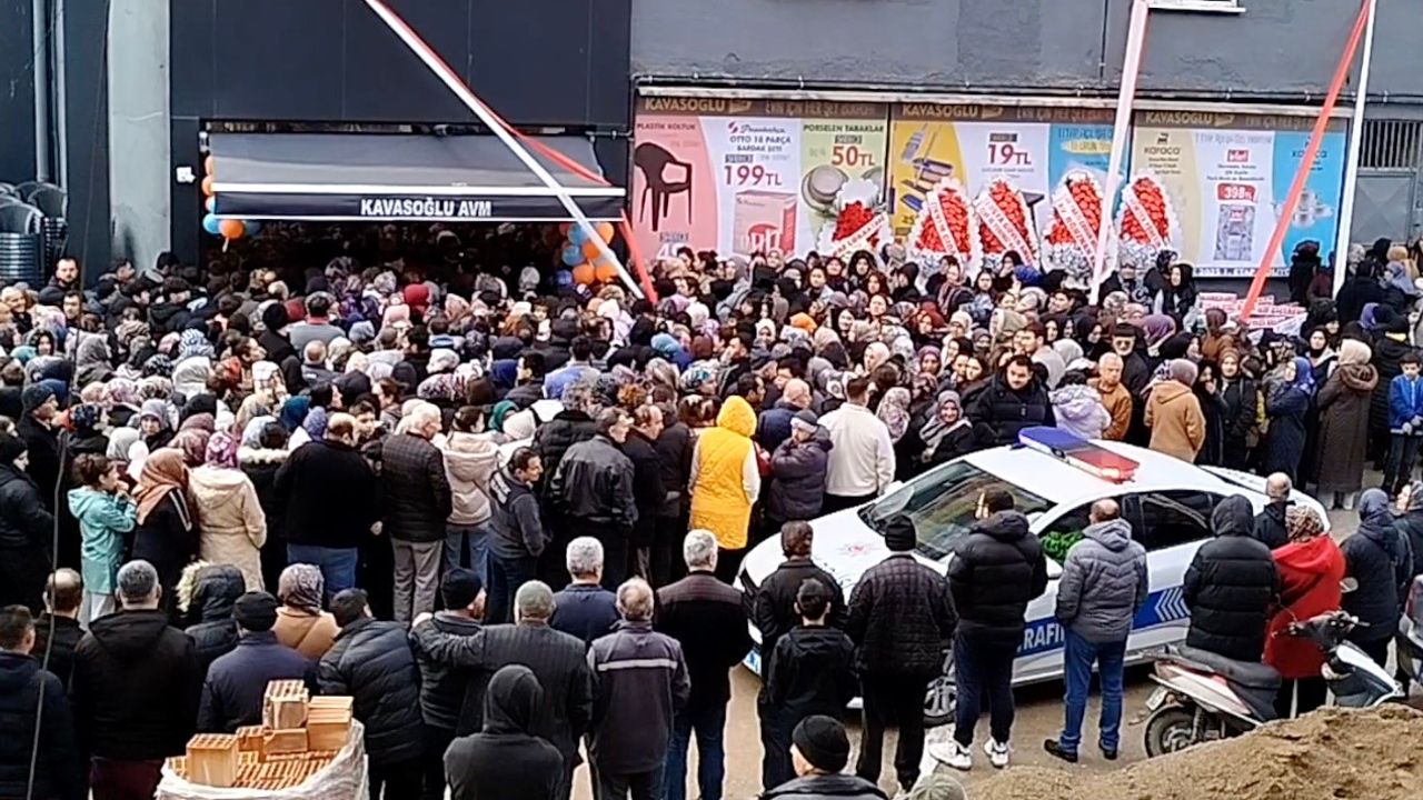 Çorum'un Osmancık ilçesinde bir iş yerinin açılışı için yapılan indirim izdihama dönüştü. Vatandaşlar indirimli ürünleri alabilmek için birbirleriyle yarıştı.