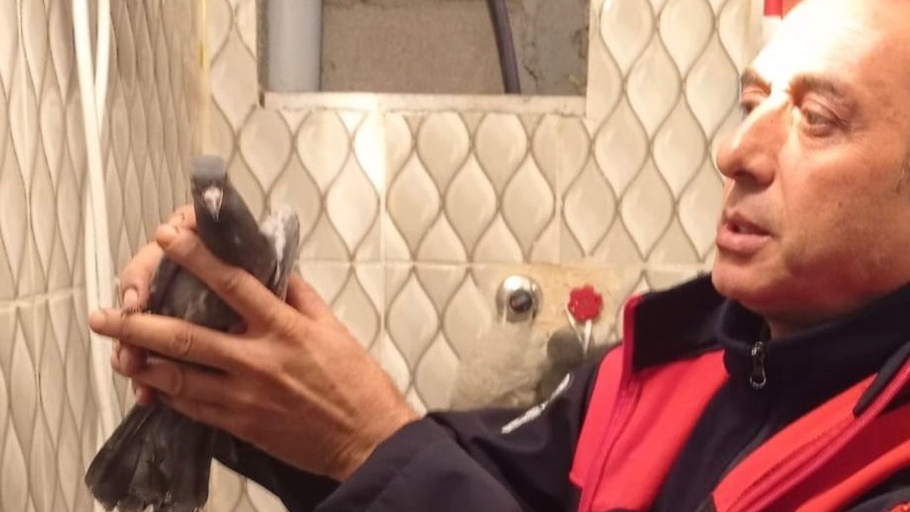 Hatay’da bina boşluğunda mahsur kalan güvercini itfaiye ekipleri kurtardı.