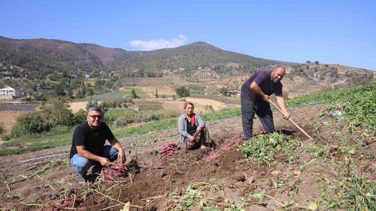Hatay’da ismi gibi tadıyla dikkat çeken şifa deposu tatlı patatesin hasadına başlandı. Bölgede çapayla veya makineyle sökümü yapılan tatlı patatesler, kilogram fiyatı tarladan 35 TL’ye alıcı buluyor.