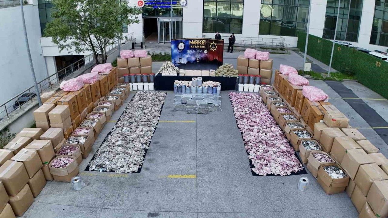 İstanbul’da düzenlenen geniş kapsamlı narkotik operasyonlarında, 443 kilo 232 gram uyuşturucu madde, 4 milyon 117 bin 925 adet sentetik ecza, 96 bin 900 captagon hap ve 627 kilo 876 gram katkı maddesi ele geçirildi.