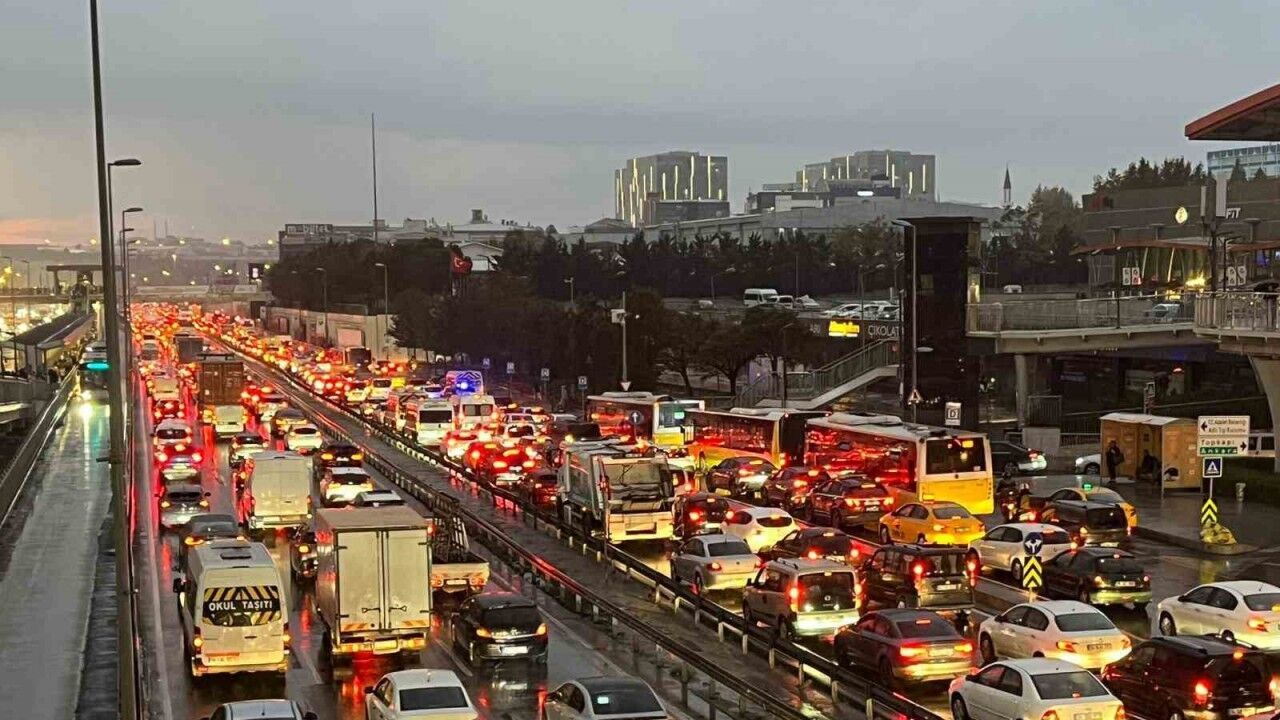 Meteoroloji yetkililerinin uyarılarının ardından megakent İstanbul’da önce şiddetli rüzgar ardından da beklenen yağmur başladı. Yağmurun başlamasıyla birlikte trafik yoğunluğu da arttı. Ana arterlerde uzun araç kuyrukları oluştuğu gözlendi. Trafik zaman zaman durma noktasına geldi. Yenibosna trafik yoğunluğu kameraya yansıdı. İstanbul Büyükşehir Belediyesi (İBB) Cep Trafik verilerine göre ise trafik yoğunluğu saat 18.20 itibariyle yüzde 81’e ulaştı. Taksim’de ise yağmura hazırlıksız yakalanan vatandaşlar zor anlar yaşadı.