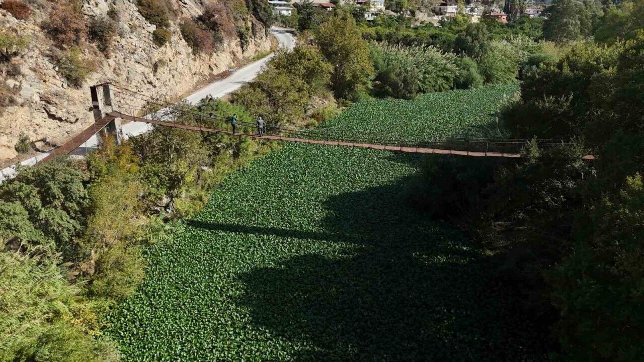 Hatay’da görünümüyle dikkat çeken ve boyları 1 metreyi bulan su sümbülleri, Hatay’ın Defne ve Samandağ ilçelerinde Asi Nehri’nin üzerini kaplayarak adeta nehri görünmez hale getirdi. Öte yandan nehri yeşile bürüyen su sümbülleri, görünümüyle görsel şölen oluşturuyor.