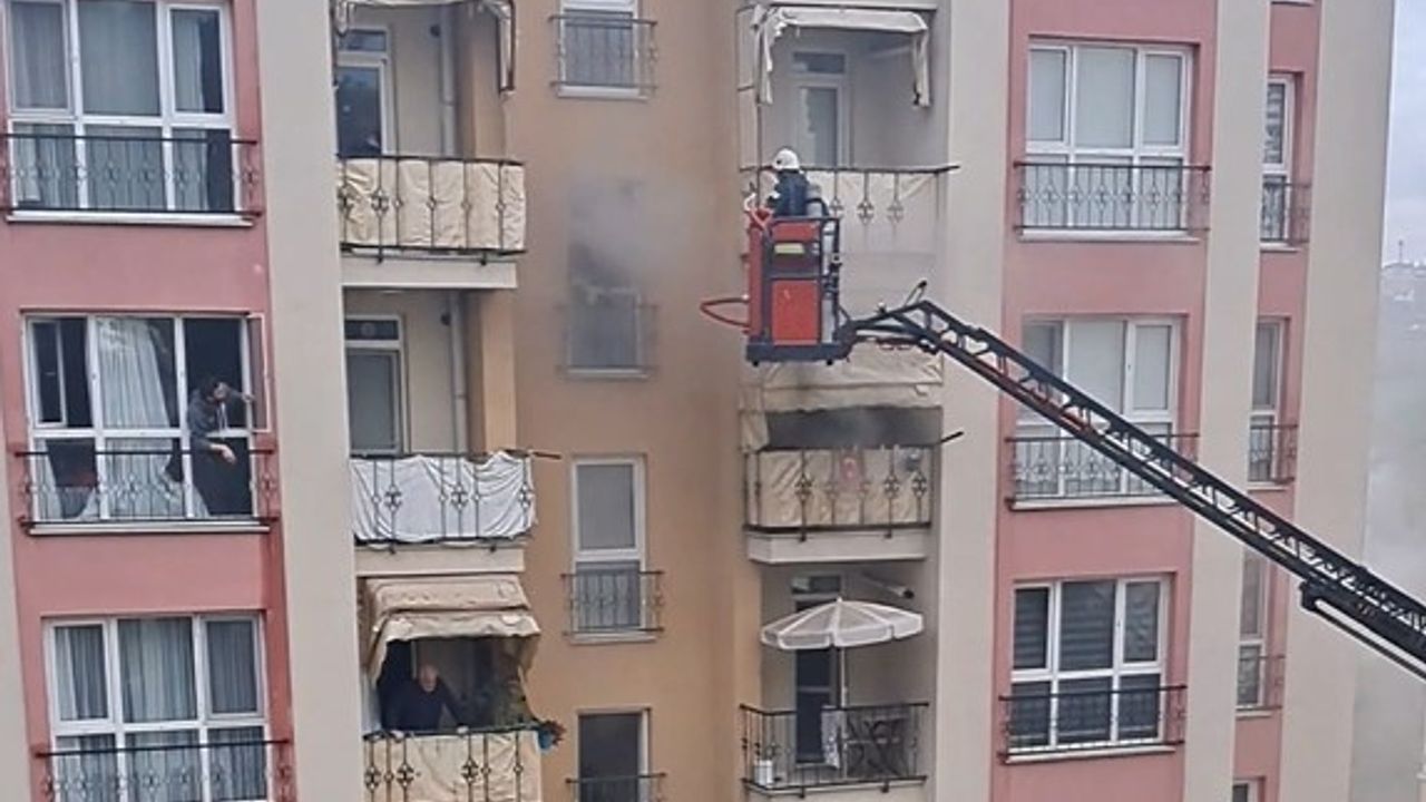 İtfaiye erinin desteğiyle nefes alması sağlanan ve pencere kenarına getirilen vatandaş, merdivenli araçla aşağı indirilerek sağlık ekiplerine teslim edildi.