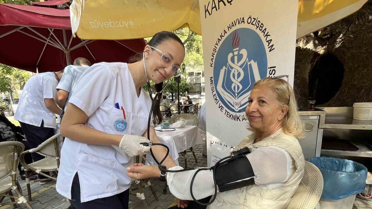İzmir’de sağlık hizmetleri alanında eğitim gören lise öğrencileri, Karşıyaka’daki park ve kafelerde orta yaşlı ve yaşlı bireylerin tansiyon ve kan şekerini ölçtü. Proje kapsamında katılımcılara sağlıklı yaşam ve kişisel bakım konularında eğitimler de verildi.