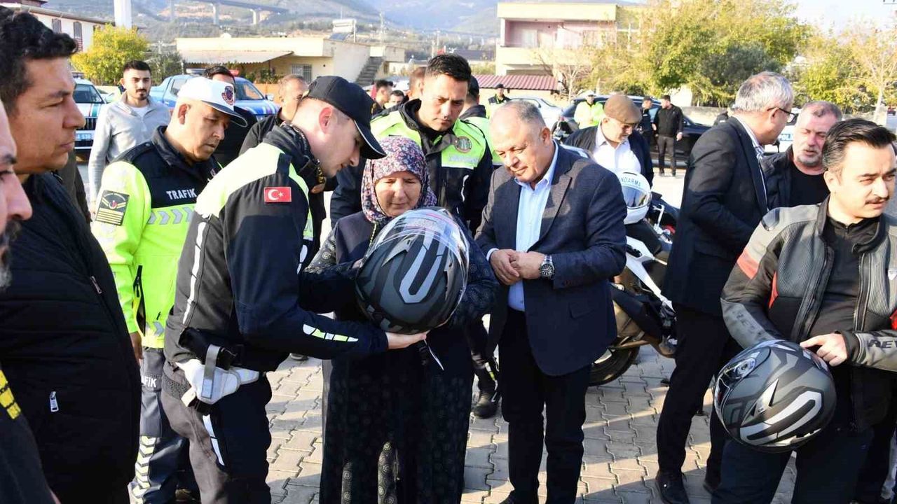 Eğitim sonunda sürücülerin güvenli sürüş alışkanlıkları kazanmaları ve trafik bilincinin arttırılması amacıyla 100 adet kask dağıtımı yapıldı.
