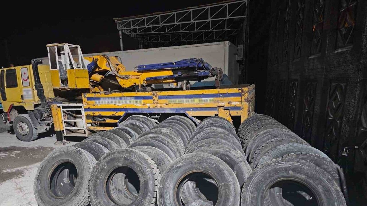 Edinilen bilgiye göre, Şanlıurfa’da yol kontrolü yapan Otoyol Jandarma Komutanlığı ekipleri, durumundan şüphelendikleri bir çekiciyi durdurdu. Çekicinin arkasındaki yarı römorkta arama yapan ekipler, piyasa değeri 450 bin lira olan fahte fatura düzenlenmiş 44 adet kamyon lastiği ele geçirdi.