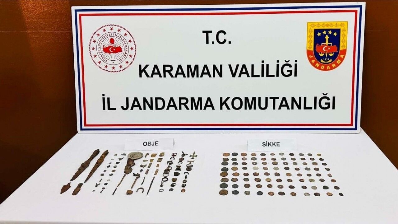 Karaman’da jandarmanın yaptığı uygulamalarda çeşitli suçlardan aranan 2 kişi tutuklanırken, tarihi eserler ve esrar ele geçirildi.