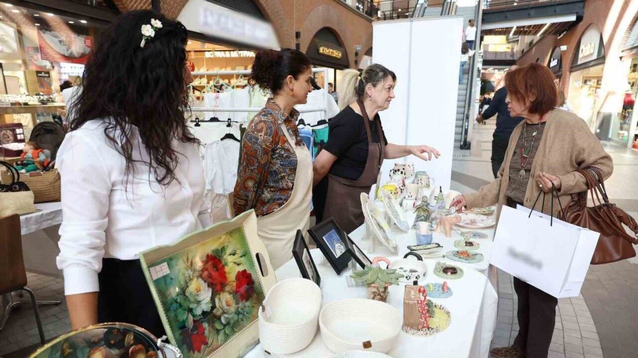 Günlerdir bu özel güne hazırlanan kadınlar, ürettikleri takı tasarımları, örgü ürünleri, tekstil çalışmaları ve ev dekorasyon ürünleriyle hem emeklerini sergileme hem de aile bütçelerine katkı sağlama fırsatı buldu. AVM giriş bölümünde açılan stantlar, ziyaretçilerden yoğun ilgi görüyor.