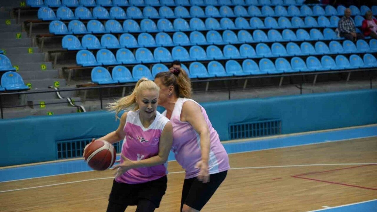 Spor salonu pembe balonlarla süslenirken, tribünleri dolduran kadınlar da pembe fular ve kurdeleleriyle farkındalık mesajına destek verdi. Dostluk havasında geçen karşılaşma, 40-31’lik skorla sona erdi.
