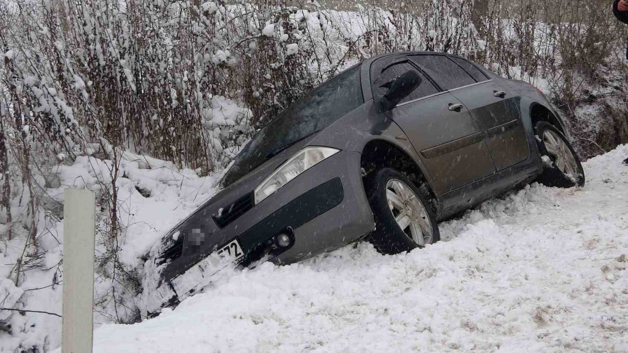 Kastamonu'da kar yağışı sebebiyle kayganlaşan yolda kontrolden çıkarak yan yatan otomobildeki 4 kişi yaralandı.