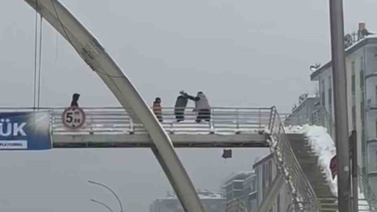 Diyarbakır'ın Bağlar ilçesinde üst geçitten araçlara kar topu attıkları gerekçesiyle çocukları darbeden sürücü tutuklandı.