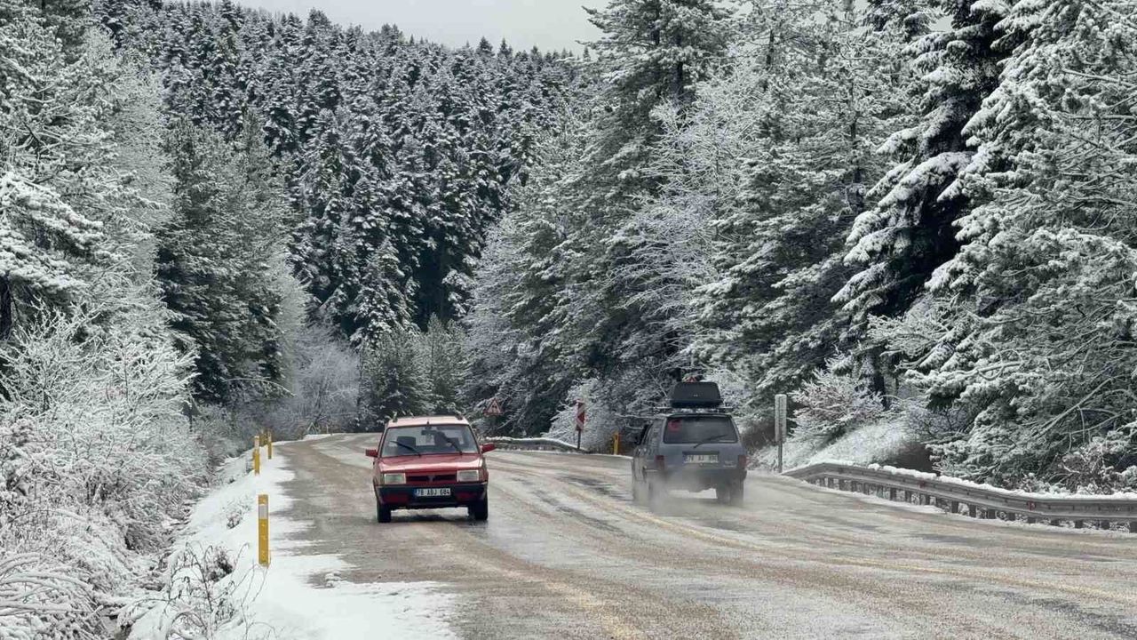 Kar yağışıyla birlikte ormanlık alanlarda kartpostallık görüntüler oluştu. Kara yolları ekipleri, ulaşımda aksama yaşanmaması için kar küreme ve tuzlama çalışması gerçekleştiriyor.