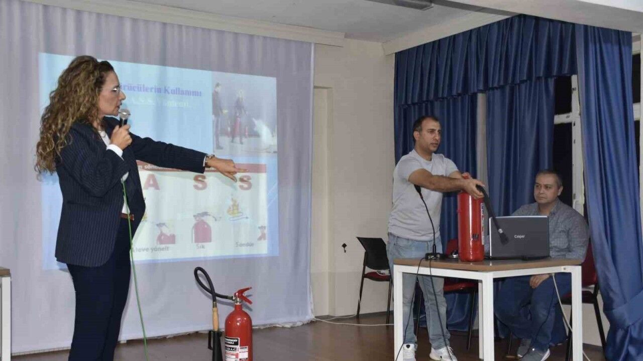 Belediye Afet İşleri Müdürlüğü’nde görevli Jeofizik Mühendisi Seval Aydın tarafından verilen eğitimde, yangın anında yapılması gereken doğru davranış biçimleri, ilk müdahale yöntemleri ve güvenli tahliye süreçleri detaylı şekilde anlatıldı. Ayrıca öğrenciler, yangın söndürme ekipmanlarının tanıtımı ve doğru kullanımına dair uygulamalı bilgilerle bilinçlendirildi.