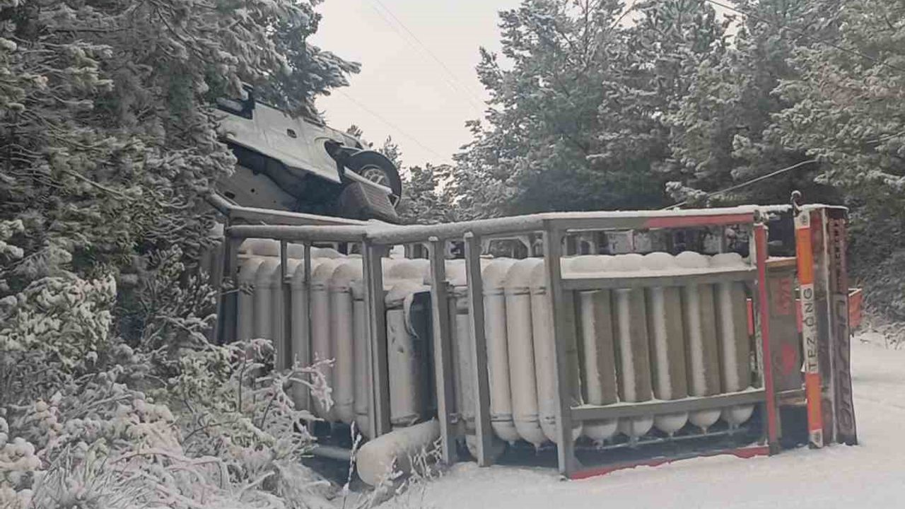 Kastamonu'da buzlanma sebebiyle kontrolden çıkan doğalgaz tüpleri yüklü tır devrildi. Tüplerde meydana gelen sızıntı sebebiyle yol trafiğe kapatıldı.