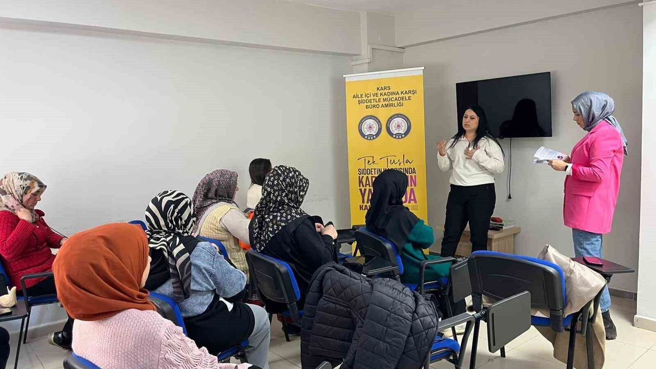 Kars'ta kadınlara yönelik bilgilendirme çalışmaları kapsamında Kadın Destek Uygulaması (KADES) hakkında tanıtım ve farkındalık etkinliği düzenlendi.