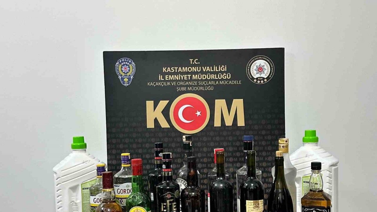 Kastamonu’da polis ekiplerince yapılan çalışmalar sonucu 10 litre etil alkol ile 15 şişe el yapımı alkol yakalandı.
