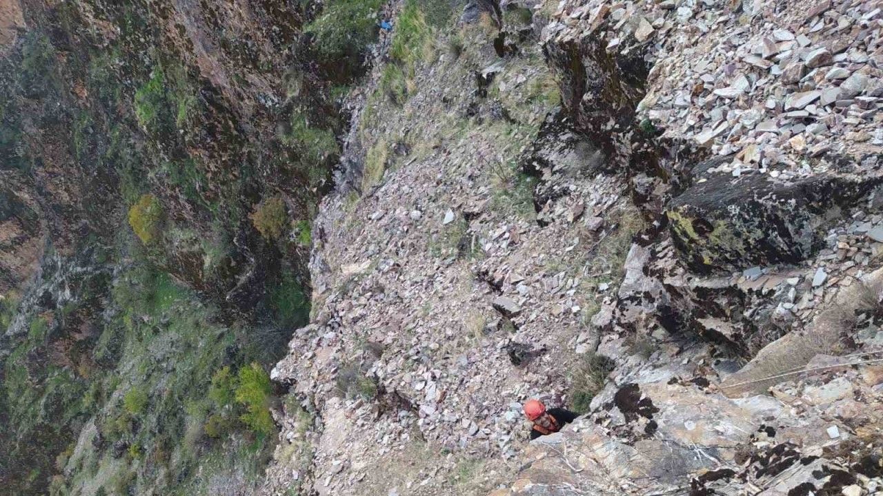 Kahramanmaraş’ta kayalıklarda mahsur kalan 5 keçi kurtarılarak sahibine teslim edildi.