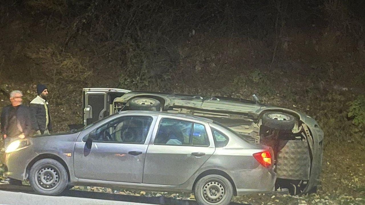 Adıyaman'da kayganlaşan yolda kontrolden çıkan bir otomobil şarampole devrildi.