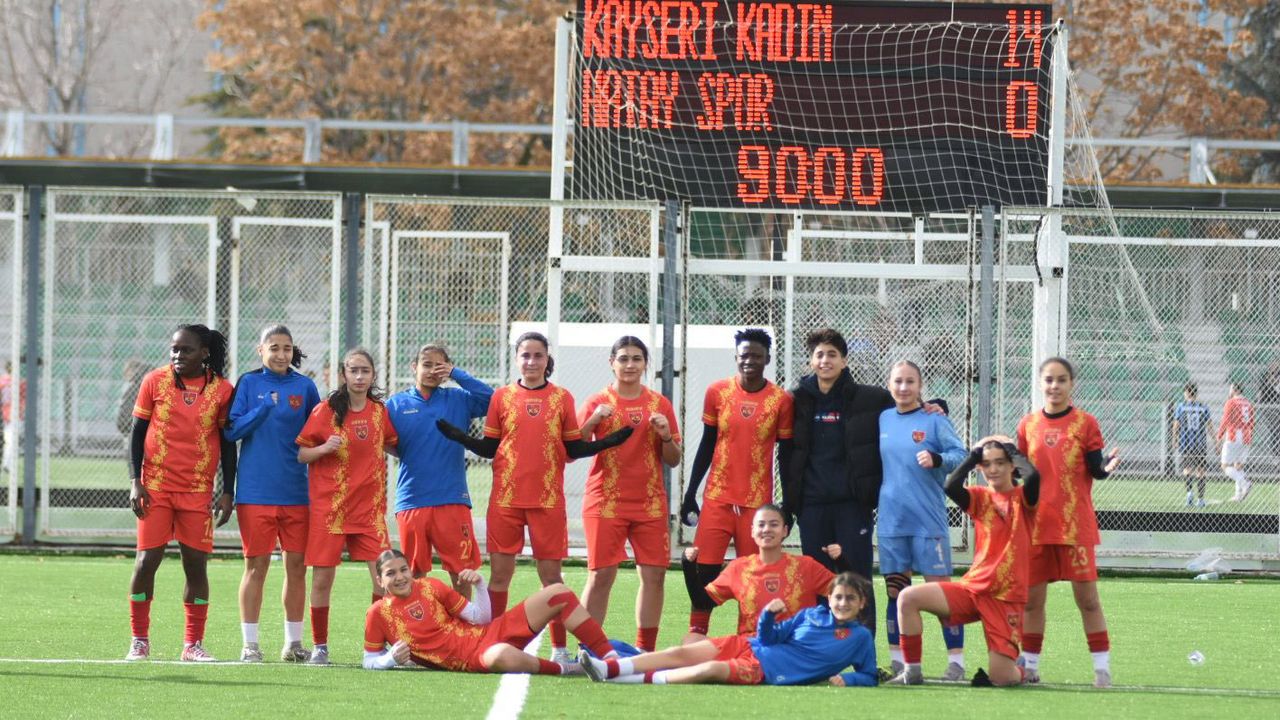 Kadınlar 1’nci Ligi’nde mücadele eden Kayseri Kadın FK bugün sahasında Hatay Defne 1994 Spor Kulübü’nü 14-0’lık skorla mağlup etti.