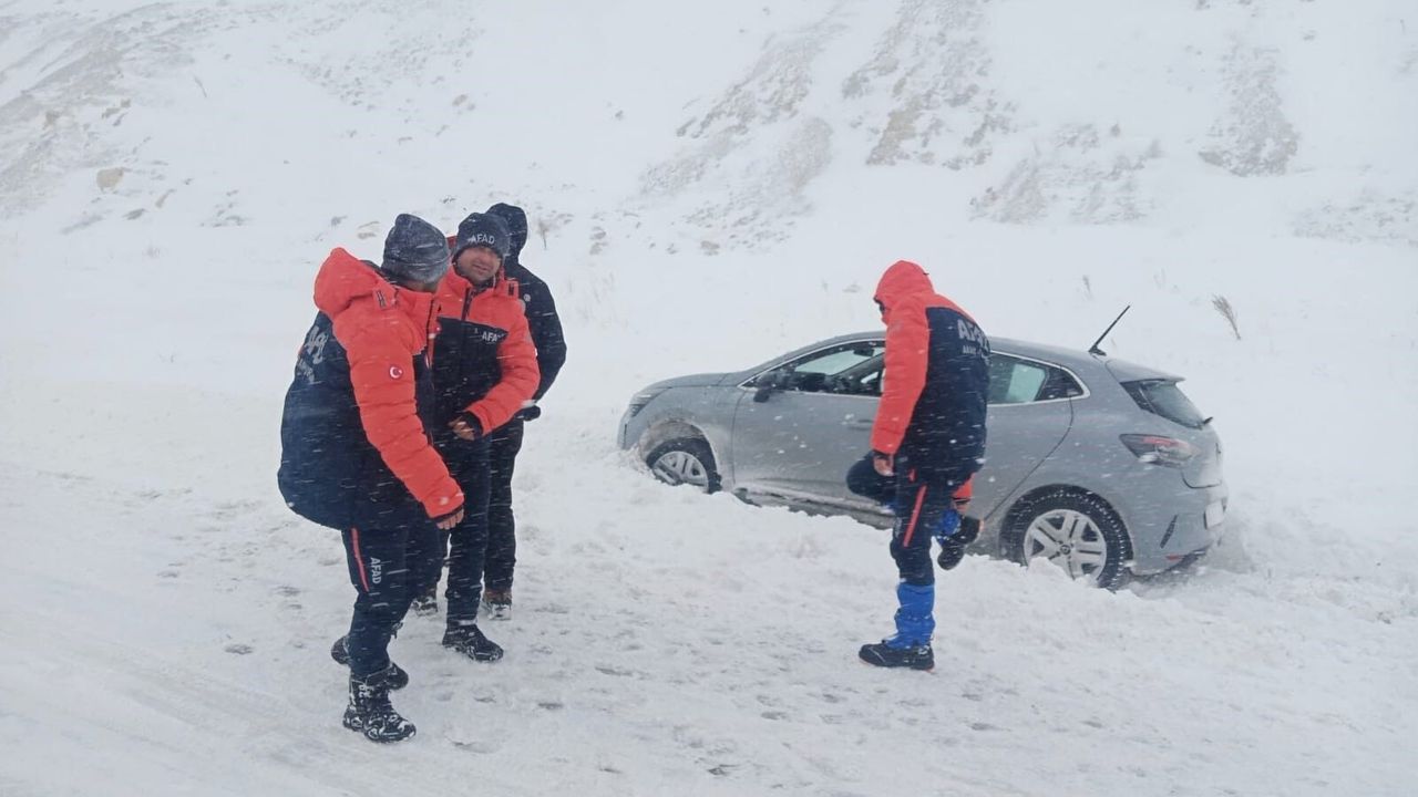Yolda mahsur kalan araçlar, AFAD İl Müdürlüğü Birlik Müdürlüğü koordinesindeki ekipler tarafından zor şartlar altında kurtarıldı.