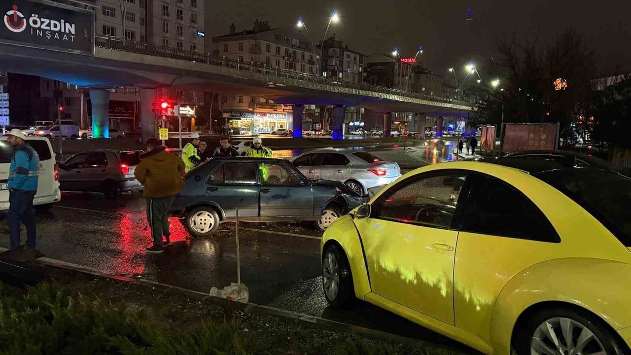 Kayseri'nin Kocasinan ilçesinde kontrolden çıkan otomobil, yolun karşısına geçerek kırmızı ışıkta bekleyen 5 araca çarptı. Kazada 2 sürücü yaralandı.