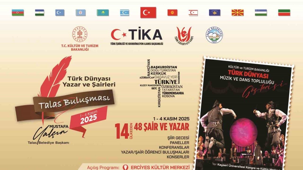 Talas Belediyesi’nin ev sahipliğinde gerçekleştirilecek ’Türk Dünyası Yazar ve Şairleri Talas Buluşması’, 1-4 Kasım tarihlerinde 14 ülkeden 48 yazar ve şairi bir araya getirecek. Kültür ve Turizm Bakanlığı, TİKA ve Türk Edebiyatı Vakfı iş birliğiyle düzenlenecek etkinlik, kenti dört gün boyunca kültür, sanat ve kardeşlik atmosferine büründürecek. Talas Belediye Başkanı Mustafa Yalçın’ın vizyonuyla hayata geçirilen buluşma şiir geceleri, paneller, konferanslar, yazar ve şairlerin öğrencilerle buluşmaları ile konserlerden oluşan zengin bir program sunacak. Başkan Yalçın, etkinliğin Türk dünyasının ortak dilini, duygusunu ve kültürel mirasını canlı tutmak açısından büyük önem taşıdığını belirterek, "Talas’ta sadece şehirleri değil, gönülleri de buluşturuyoruz. Bu buluşma, ortak tarihimizin ve kardeşliğimizin bir yansıması olacak" ifadelerini kullandı. Kültür ve Turizm Bakanı Mehmet Nuri Ersoy’un da katılması beklenen programın açılışı 1 Kasım Cumartesi günü saat 10.00’da Erciyes Kültür Merkezinde yapılacak. Etkinlik kapsamında ayrıca 3 Kasım Pazartesi günü Kayseri Üniversitesi Kongre ve Kültür Merkezi’nde Kültür ve Turizm Bakanlığı Türk Dünyası Müzik ve Dans Topluluğu Gösterisi sahnelenecek. Gösteri saat 20.00’de başlayacak.