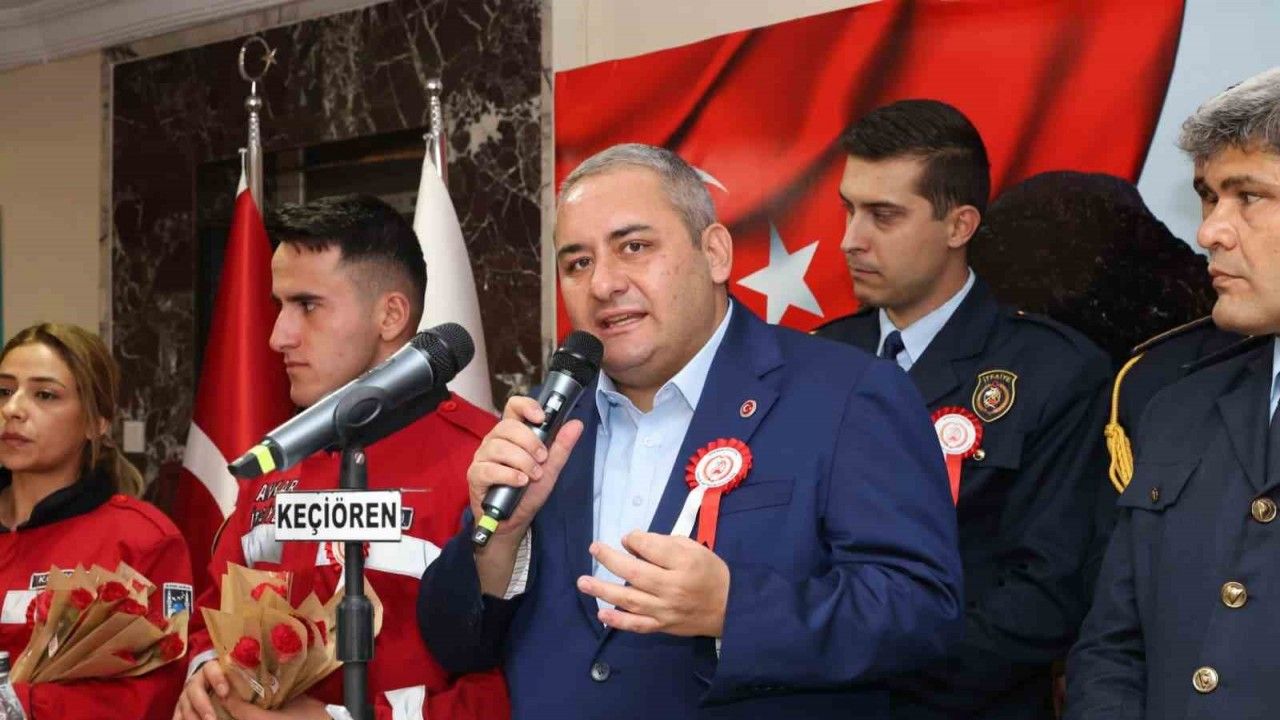Keçiören Belediye Başkanı Dr. Mesut Özarslan, programın sonunda Ankara Büyükşehir Belediyesi İtfaiye Daire Başkanı Ali Levent Çeri’ye tüm itfaiye erleri adına plaket takdim etti. Ali Levent Çeri de Başkan Özarslan’a itfaiyeciler tarafından özel olarak yapılan itfaiyeci heykelini hediye etti.