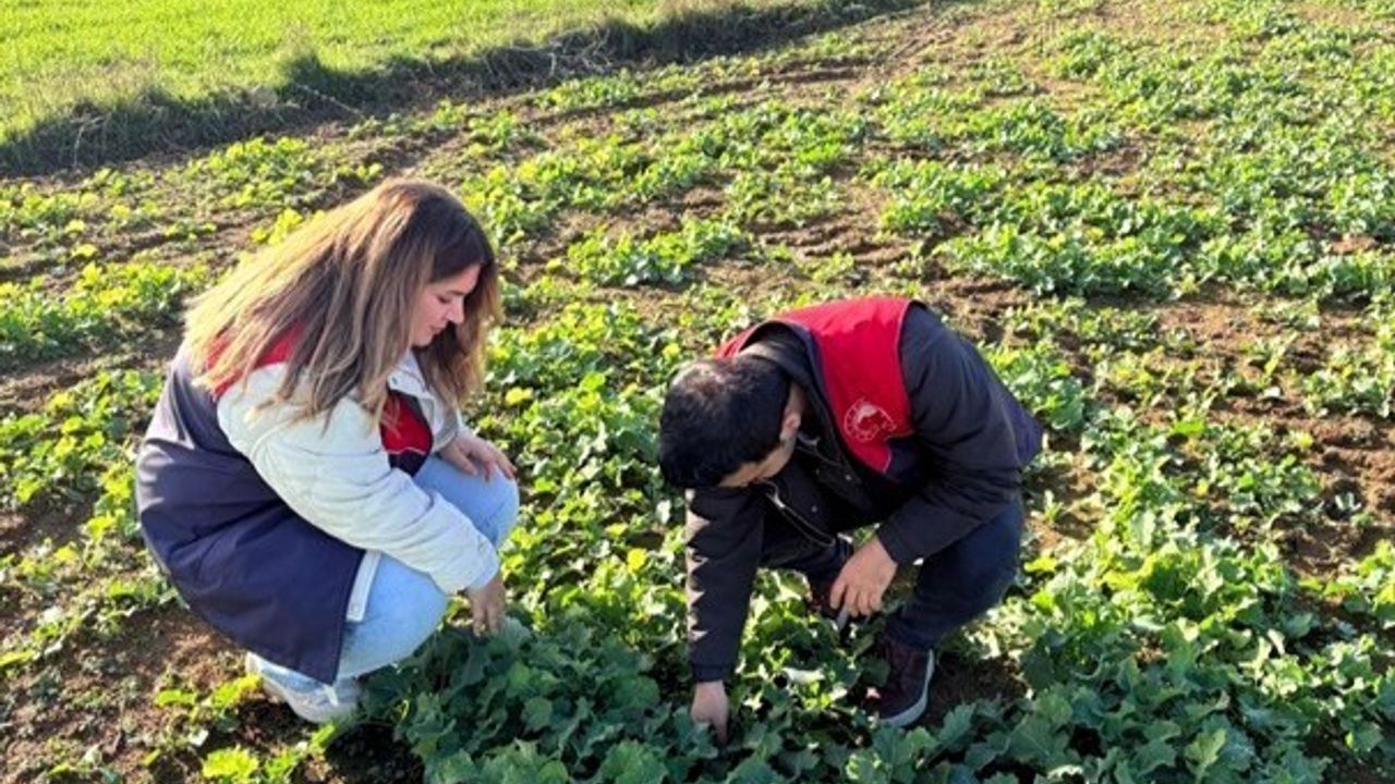 Kırklareli'nin Pehlivanköy ve Kofçaz ilçelerinde kanola ekimi yapılan tarlalarda, bitkinin çıkış durumu, fizyolojik evresi, kök gelişimi ile toprak nem durumu yerinde incelendi.