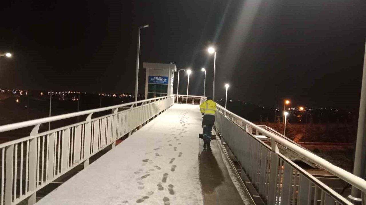 Kent genelinde dün gece yüksek kesimlerde etkisini artıran kar yağışına karşı harekete geçen Kocaeli Büyükşehir Belediyesi ekipleri; ana arterler, köprüler, hastane girişleri ve durak önlerinde kar küreme ve tuzlama çalışması yaptı.