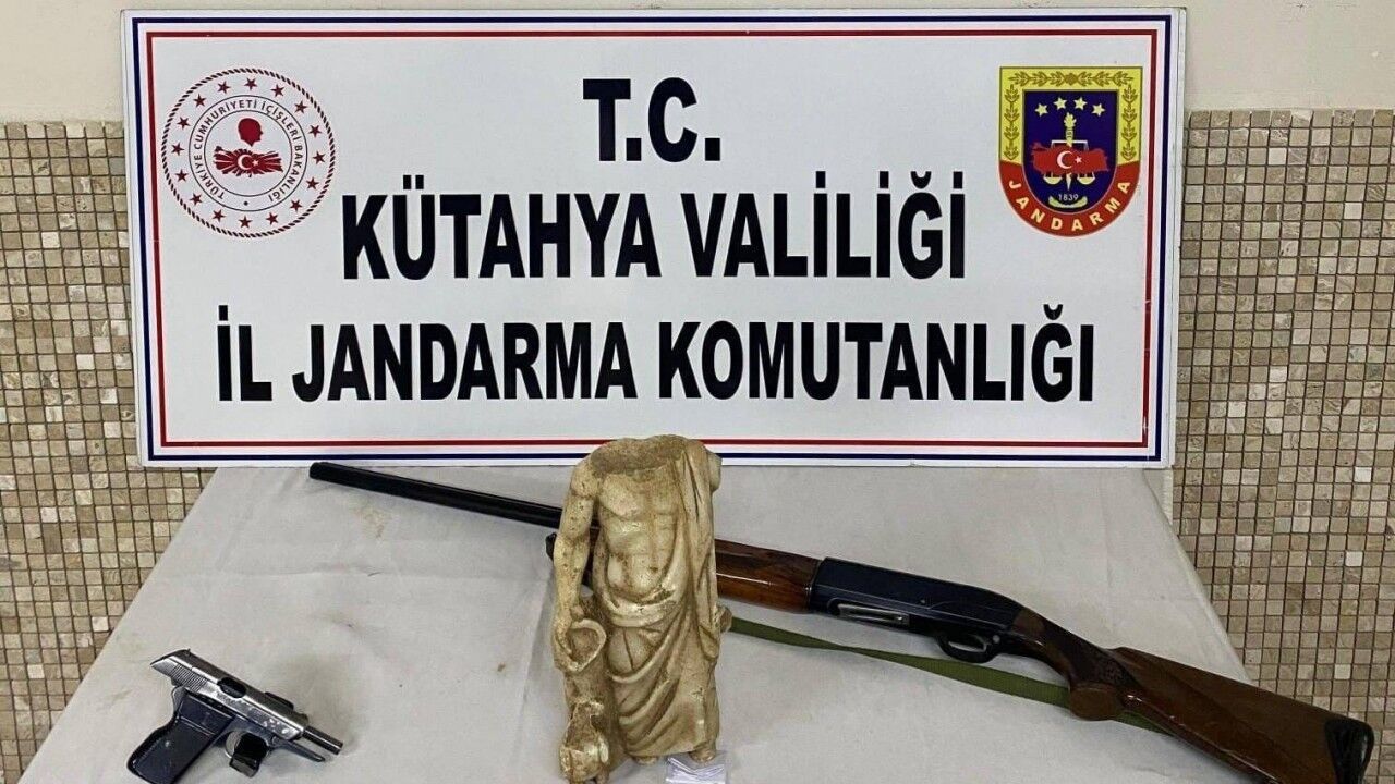 Kütahya İl Jandarma Komutanlığı unsurlarınca il genelinde kaçakçılık suçları ile mücadele kapsamında yapılan çalışmalar neticesinde, Emet ilçesi Kırgıl köyünde bir şahsın ikametinde tarihi eser olduğu bilgisinin alınması üzerine, şahsa ait ikamette yapılan aramada, 1 adet M.Ö. 5. yüzyıla ait olduğu değerlendirilen Asklepios heykeli, 1 adet av tüfeği, 1 adet ruhsatsız tabanca ve 7 adet tabanca fişeği ele geçirildi.