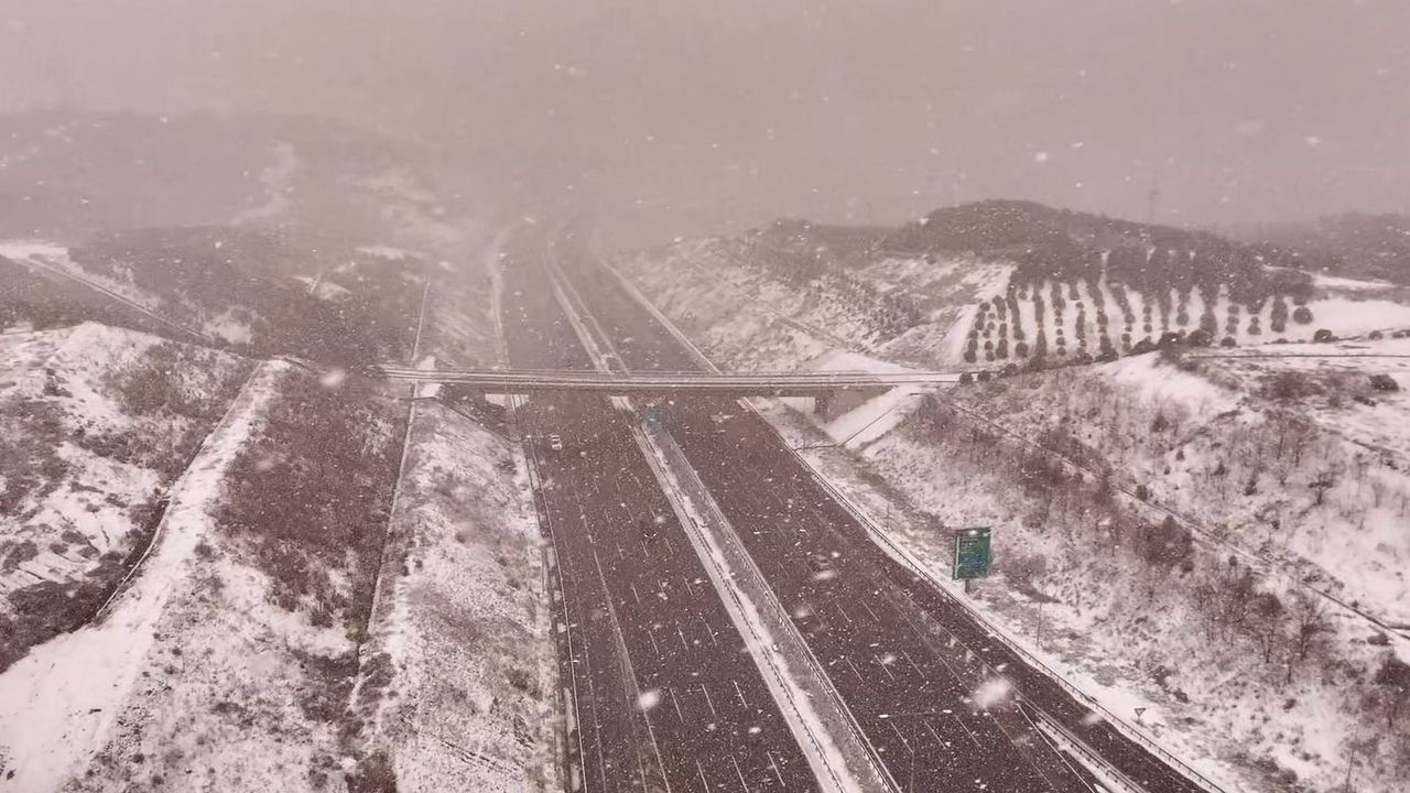 İstanbul Kuzey Marmara Otoyolu Fener Tepe Mevkii'nde kar yağışı havadan dron ile görüntülendi. Görüntülerde lapa lapa kar yağdığı görülüyor.