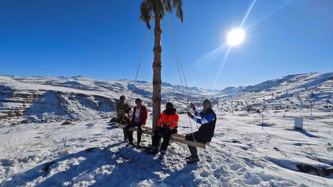 Dört kafadar arkadaş, kurdukları salıncak üzerinde de vakit geçirerek kış mevsiminin tadını doyasıya çıkardıklarını belirtti.