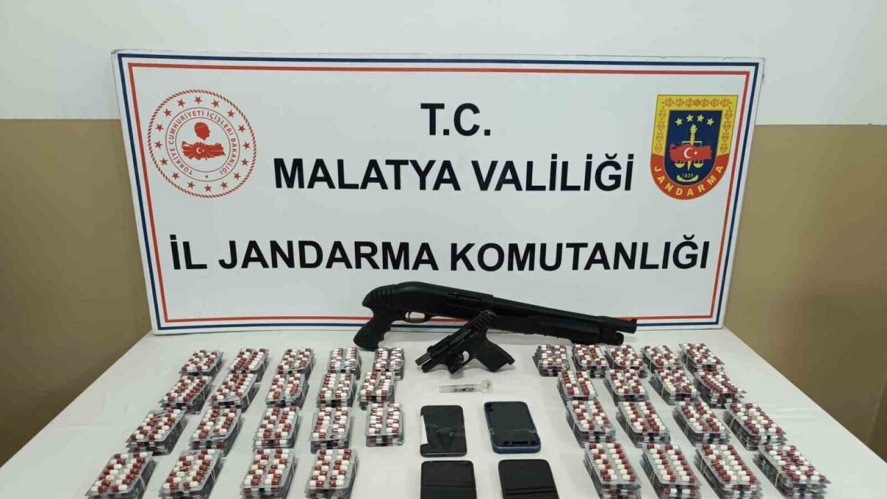 Malatya’da jandarma tarafından düzenlenen operasyonda sentetik hap ve silahlar ele geçirildi, 4 kişi gözaltına alındı.