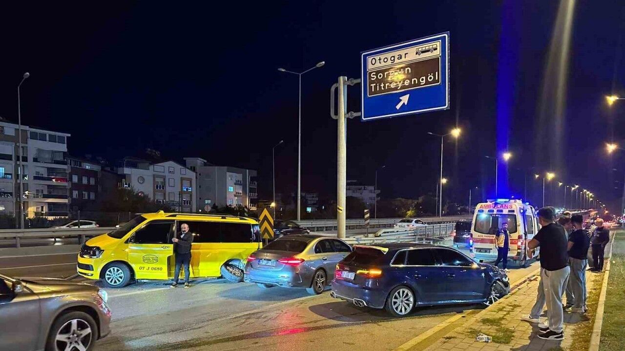 Kaza, Antalya-Alanya D-400 Karayolu Sorgun-Otogar Köprülü kavşak yan yolda meydana geldi. Edinilen bilgiye göre, Muhammed M. M. idaresindeki 07 CCG 972 plakalı otomobil, Ümit A. yönetimindeki 07 J 0680 plakalı ticari taksiyle çarpıştı. Çarpışmanın şiddetiyle otomobilde bulunan sürücü Muhammed M.M. ve yolcu Latife N.Y. yaralandı. Çevredekilerin ihbarı üzerine bölgeye polis ve sağlık ekipleri sev edildi. Olay yerine gelen sağlık ekiplerinin ilk müdahalesinin ardından yaralılar ambulansla hastaneye kaldırıldı. Kazayla ilgili inceleme başlatıldı.
