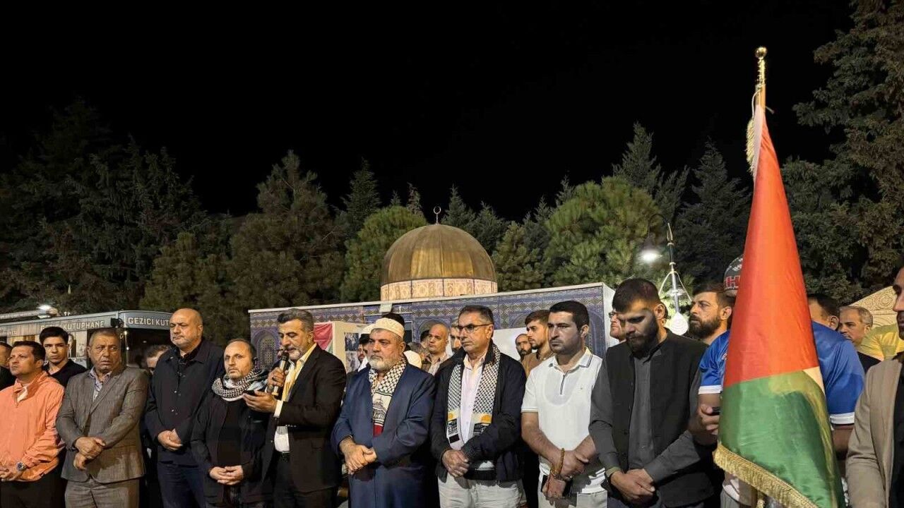 Artuklu ilçesindeki 15 Temmuz Demokrasi ve Şehitler Parkı’nda bir araya gelen vatandaşlar ve sivil toplum kuruluşları, İsrail aleyhine sloganlar attı ve tekbir getirdi.